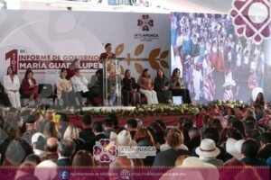 Ixtlahuaca, Méx.- Al rendir su primer informe de gobierno, la presidenta municipal de Ixtlahuaca María Guadalupe Díaz Avilez, ante Karina Labastida Sotelo directora general del DIFEM, quien acudió en representación de la gobernadora Delfina Gómez Álvarez, informó que en este primer año de gobierno, en Ixtlahuaca se construyeron 125 obras, con un monto de 234 millones 975 mil 422.37 pesos.