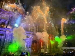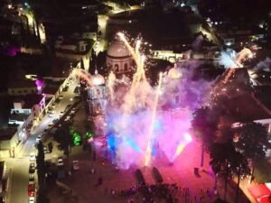 Posteriormente, en la parroquia, disfrutamos de un hermoso show pirotécnico que iluminó el cielo, fue simplemente espectacular