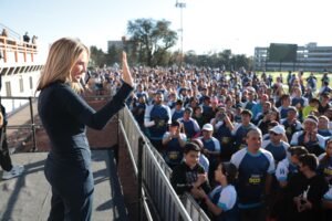- La presidenta municipal, Romina Contreras, dio el banderazo de salida de la carrera y caminata “Yo Corro para Sentirme Vivo”, con distancias de cinco y tres kilómetros